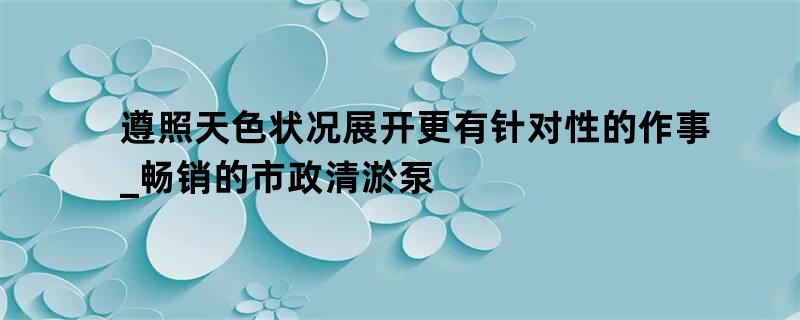 遵照天色状况展开更有针对性的作事_畅销的市政清淤泵
