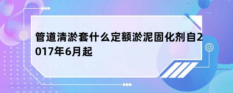 管道清淤套什么定额淤泥固化剂自2017年6月起