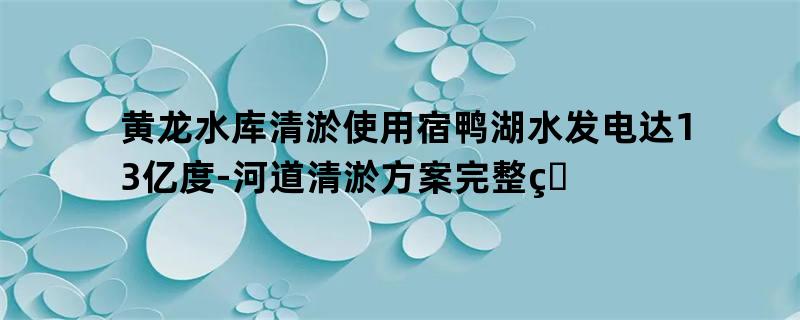 黄龙水库清淤使用宿鸭湖水发电达1.3亿度-河道清淤方案完整版