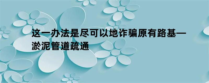 这一办法是尽可以地诈骗原有路基—淤泥管道疏通