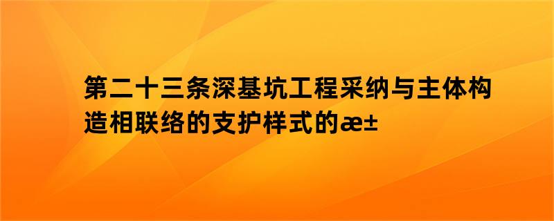第二十三条 深基坑工程采用与主体构造相连结的支护步地的,相联络的支护样式的污水处理厂清淤方案安排时还应该连结工程修修安排和构造安排文献材料,并斟酌支护构造和主体构造根本重降的合适性。