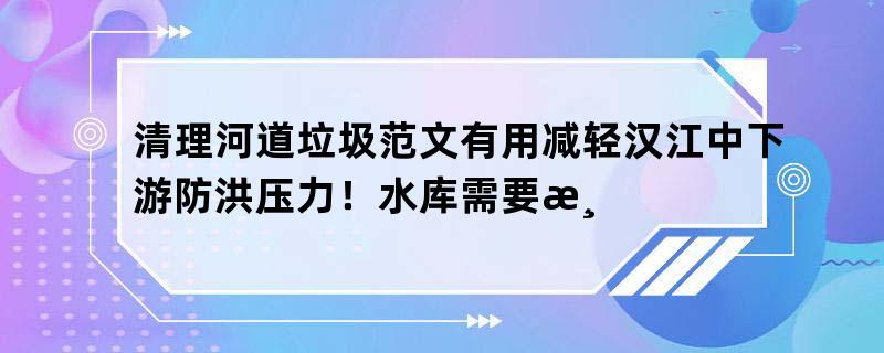 清理河道垃圾范文有用减轻汉江中下游防洪压力!水库需要清淤吗
