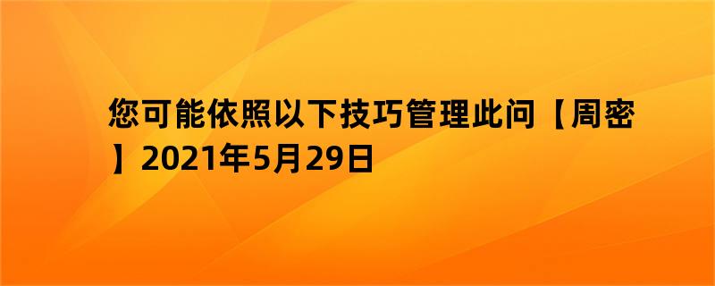 您可能依照以下技巧管理此问....【周密】2021年5月29日