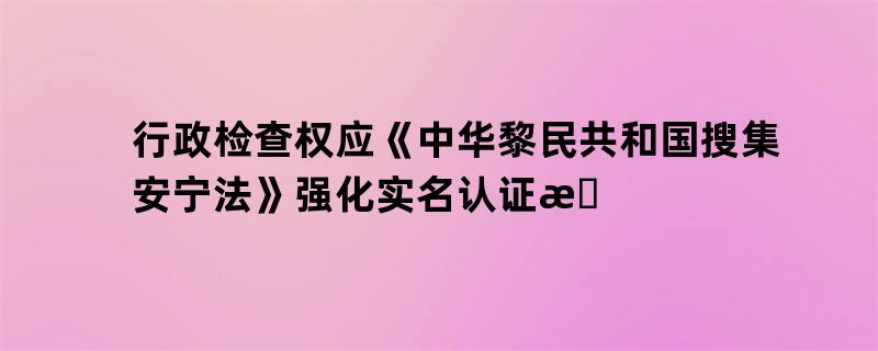 行政检查权应《中华黎民共和国搜集安宁法》强化实名认证机造恳求