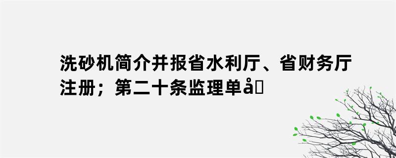 洗砂机简介并报省水利厅、省财务厅注册;第二十条监理单元应创造安闲专项计划的履行情状的监视查验