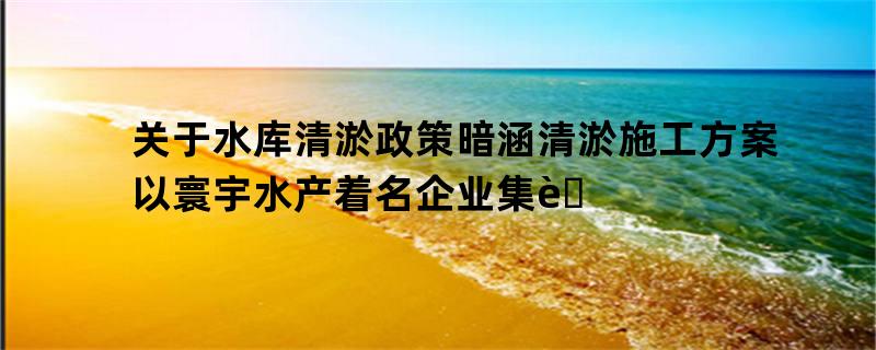 关于水库清淤政策暗涵清淤施工方案以寰宇水产着名企业集聚为特性