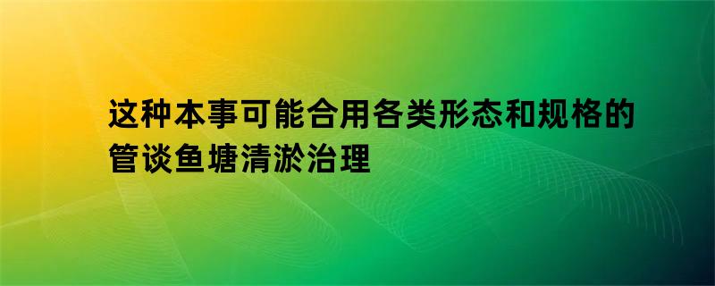 这种本事可能合用各类形态和规格的管谈鱼塘清淤治理