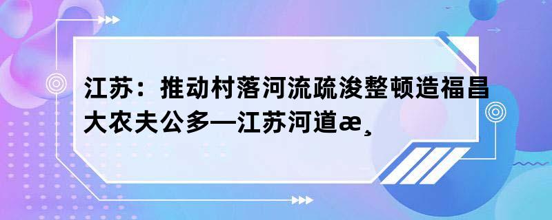 江苏:推动村落河流疏浚整顿造福昌大农夫公多—江苏河道清淤工程队
