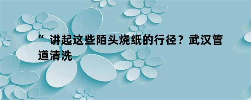”讲起这些陌头烧纸的行径?武汉管道清洗