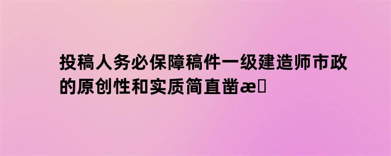 ④ 凡向本网站投稿的作家,投稿人务必保障稿件的原创性和实质的可靠性,作假等行径导致的功令后果,由投稿人自己担任。投稿人务必保障稿件一级建造师市政