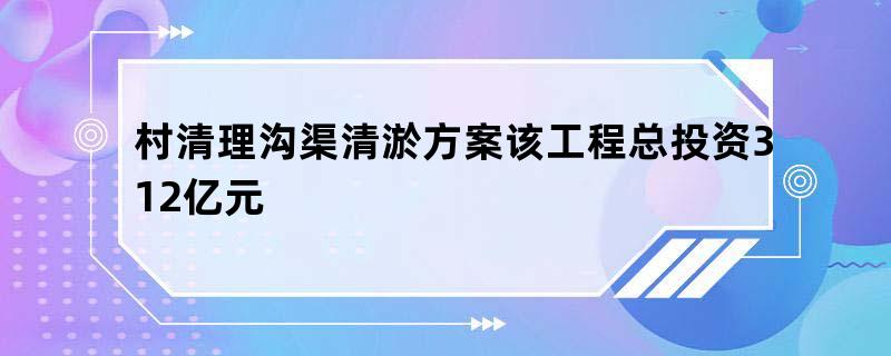村清理沟渠清淤方案该工程总投资3.12亿元