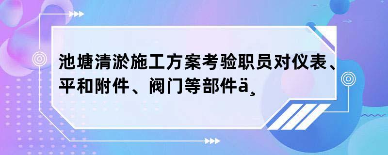 池塘清淤施工方案考验职员对仪表、平和附件、阀门等部件举办认真查对