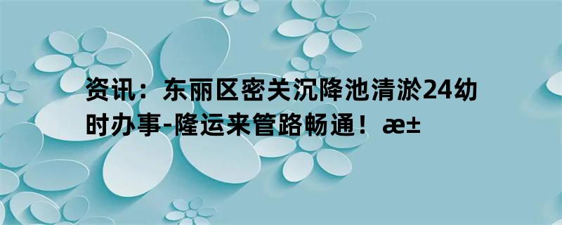 资讯:东丽区密关沉降池清淤24幼时办事-隆运来管路畅通!污水管道清淤疏通