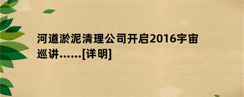 河道淤泥清理公司开启2016宇宙巡讲……[详明]