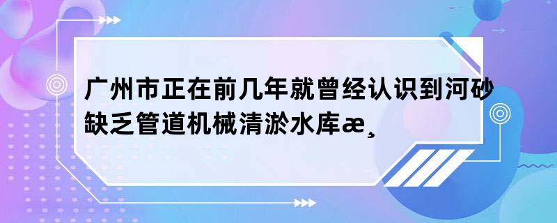 广州市正在前几年就曾经认识到河砂缺乏管道机械清淤水库清淤施工方案