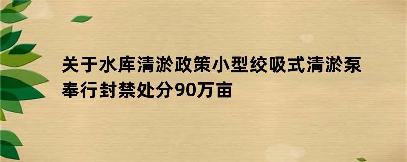 关于水库清淤政策小型绞吸式清淤泵奉行封禁处分90万亩