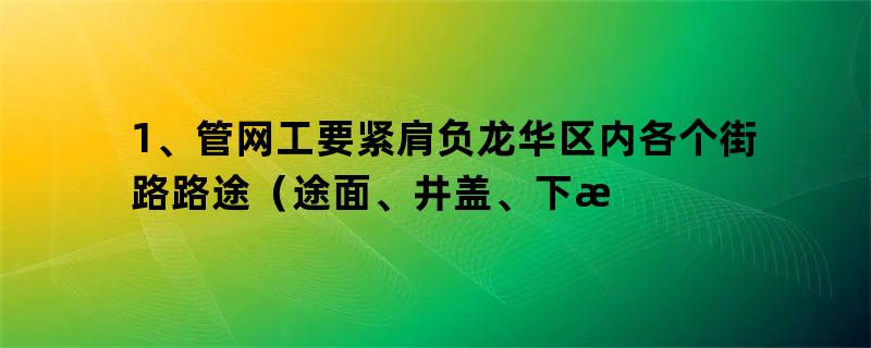 1、管网工重要刻意龙华区内各个街道道道(道面、井盖、下水道等)的维修就业;