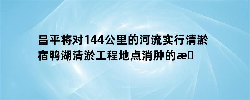 昌平将对144公里的河流实行清淤宿鸭湖清淤工程地点消肿的方法