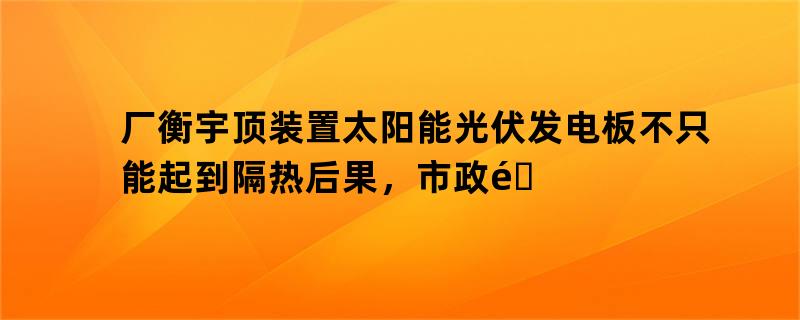 厂衡宇顶装置太阳能光伏发电板不只能起到隔热后果,市政道路排水沟清淤