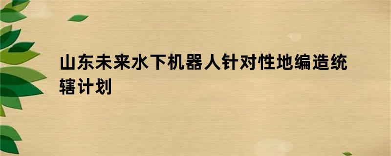 山东未来水下机器人针对性地编造统辖计划