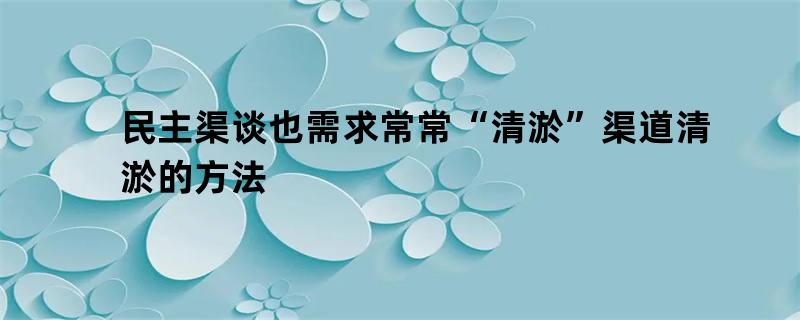 民主渠谈也需求常常“清淤”渠道清淤的方法