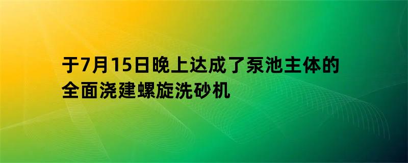于7月15日晚上达成了泵池主体的全面浇建螺旋洗砂机