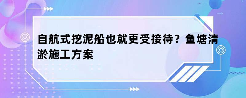 自航式挖泥船也就更受接待?鱼塘清淤施工方案