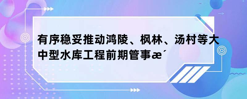 有序稳妥推动鸿陵、枫林、汤村等大中型水库工程前期管事洗沙机械公司