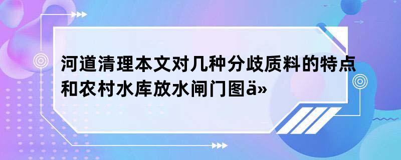 河道清理本文对几种分歧质料的特点和农村水库放水闸门图价钱实行了认识比拟