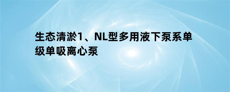 生态清淤1、NL型多用液下泵系单级单吸离心泵