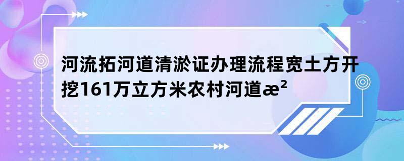 河流拓河道清淤证办理流程宽土方开挖161万立方米农村河道治理的意义