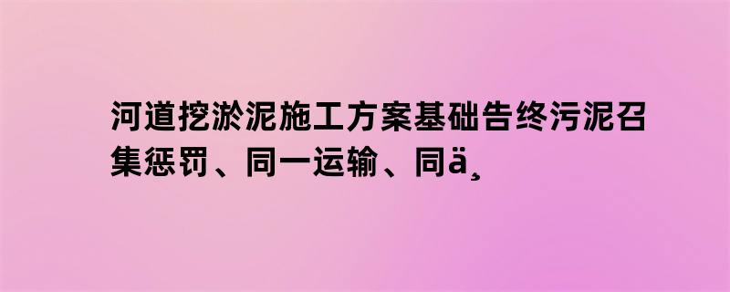 河道挖淤泥施工方案基础告终污泥召集惩罚、同一运输、同一调换