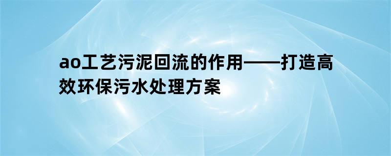 ao工艺污泥回流的作用——打造高效环保污水处理方案 随着城市化进程的加速,生活污水逐渐成为城市环境保护的重要问题。如何高效、环保地进行污水处理,已经成为当今社会亟需解决的难题。ao工艺污泥回流技术的出现,为我们提供了一种可行的方案。
