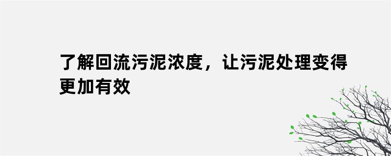 了解回流污泥浓度,让污泥处理变得更加有效 随着人口的增加和城镇化进程的加速,水污染问题日益严重,污水处理成为保障环境和人们健康的必要手段。在污水处理过程中,污泥的处理和管理也变得越发重要。回流污泥浓度是污泥处理中一个非常关键的参数,影响着污水处理的效果和运行成本。