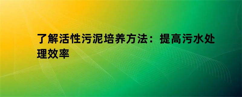 了解活性污泥培养方法:提高污水处理效率