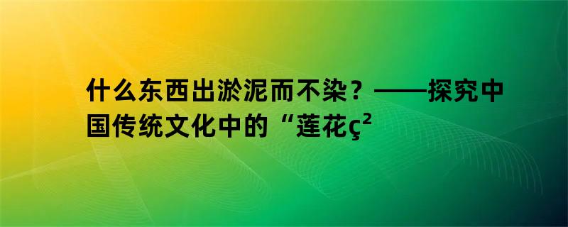 什么东西出淤泥而不染?——探究中国传统文化中的“莲花精神” 标题:什么东西出淤泥而不染?——探究中国传统文化中的“莲花精神”
