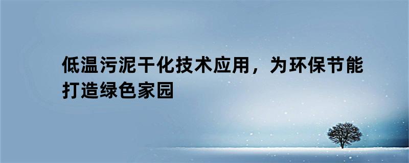 低温污泥干化技术应用,为环保节能打造绿色家园