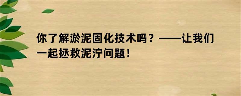 你了解淤泥固化技术吗?——让我们一起拯救泥泞问题! 标题:你了解淤泥固化技术吗?——让我们一起拯救泥泞问题!