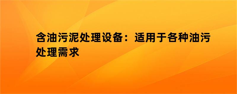 含油污泥处理设备:适用于各种油污处理需求
