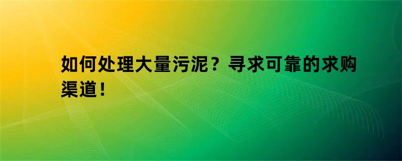 在处理污泥过程中,求购是最重要的一步。那么,如何找到可靠的求购渠道呢?