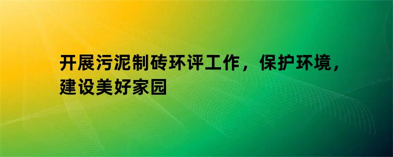 开展污泥制砖环评工作,保护环境,建设美好家园