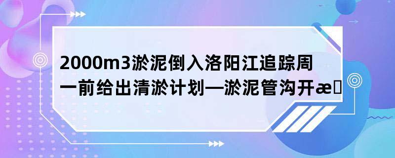 2000m3淤泥倒入洛阳江追踪周一前给出清淤计划—淤泥管沟开挖方案