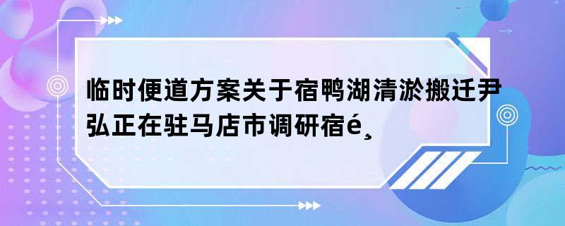 临时便道方案关于宿鸭湖清淤搬迁尹弘正在驻马店市调研宿鸭湖清淤扩容工程时夸大降低工程归纳效益更好造福公民全体
