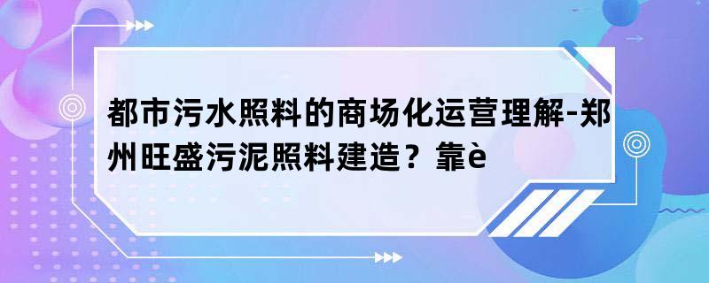 都市污水照料的商场化运营理解-郑州旺盛污泥照料建造?靠谱的淤泥破碎设备
