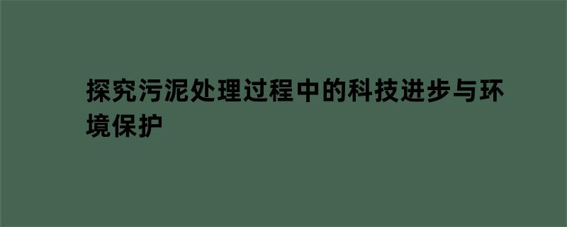 探究污泥处理过程中的科技进步与环境保护 随着社会的发展和工业的进步,城市中日益增长的污水泥浆问题日益严重,破坏了我们的水质环境,威胁人类的健康。