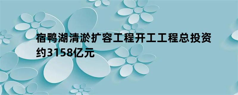 宿鸭湖清淤扩容工程开工工程总投资约3158亿元