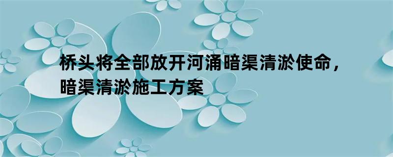 桥头将全部放开河涌暗渠清淤使命,暗渠清淤施工方案