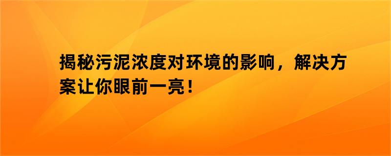 揭秘污泥浓度对环境的影响,解决方案让你眼前一亮!
