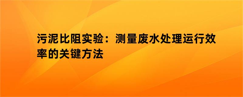 污泥比阻实验:测量废水处理运行效率的关键方法