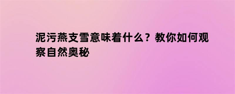 泥污燕支雪意味着什么?教你如何观察自然奥秘 在我们的日常生活中,沉迷于现代科技的我们往往失去了对自然的关注。然而,自然界中却存在着无数含义深远的现象,它们是我们观察自然,探寻未知的重要依据。其中一个具有代表性的现象即是“泥污燕支雪”。